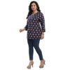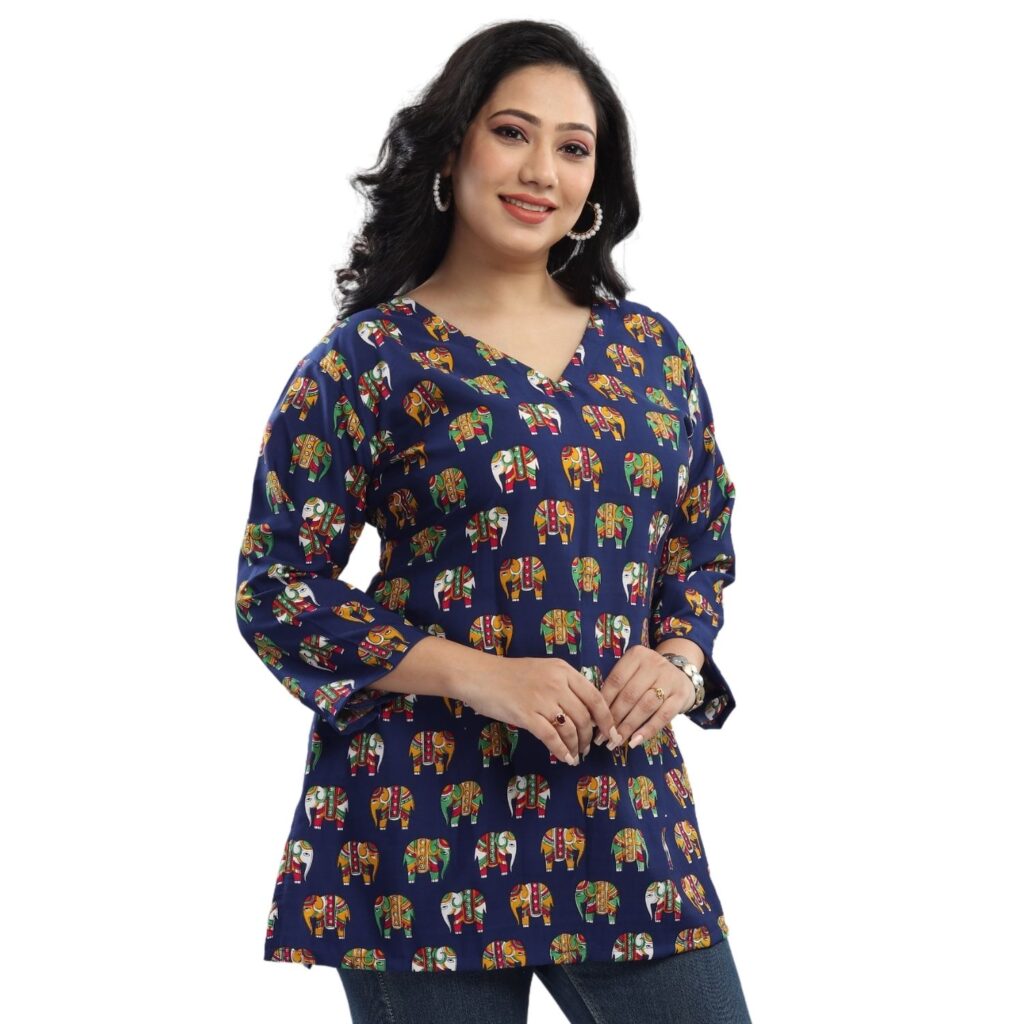 - Three-Quarter Sleeves: Designed with three-quarter sleeves, this tunic provides a balanced look that’s perfect for any occasion.