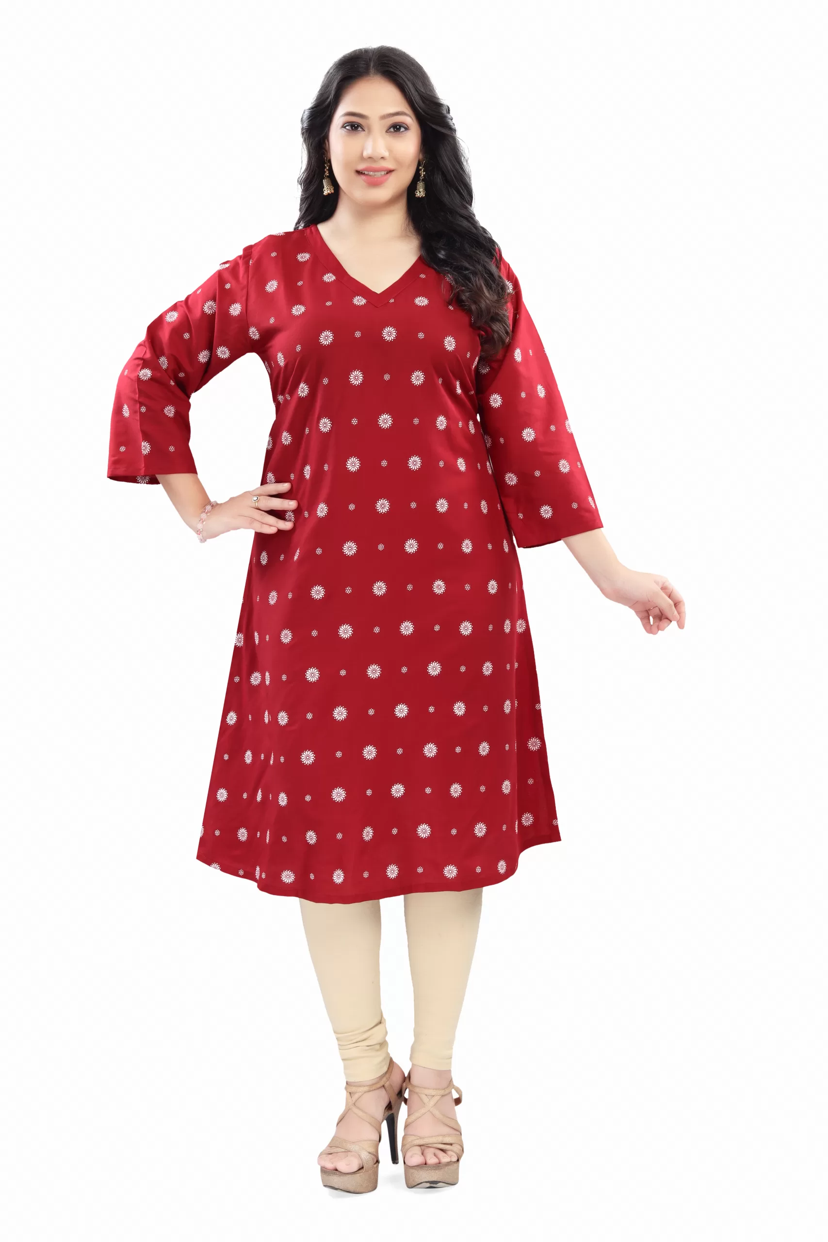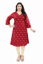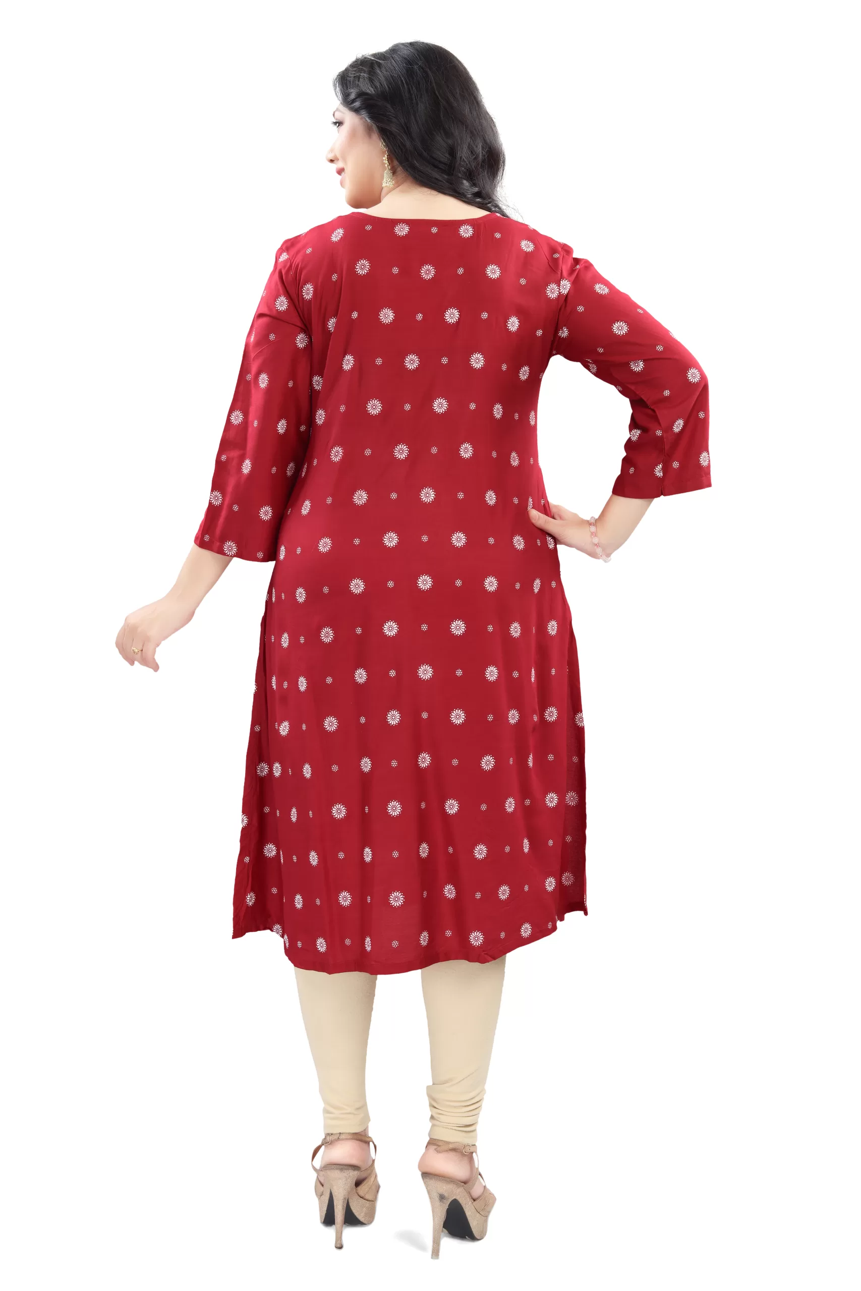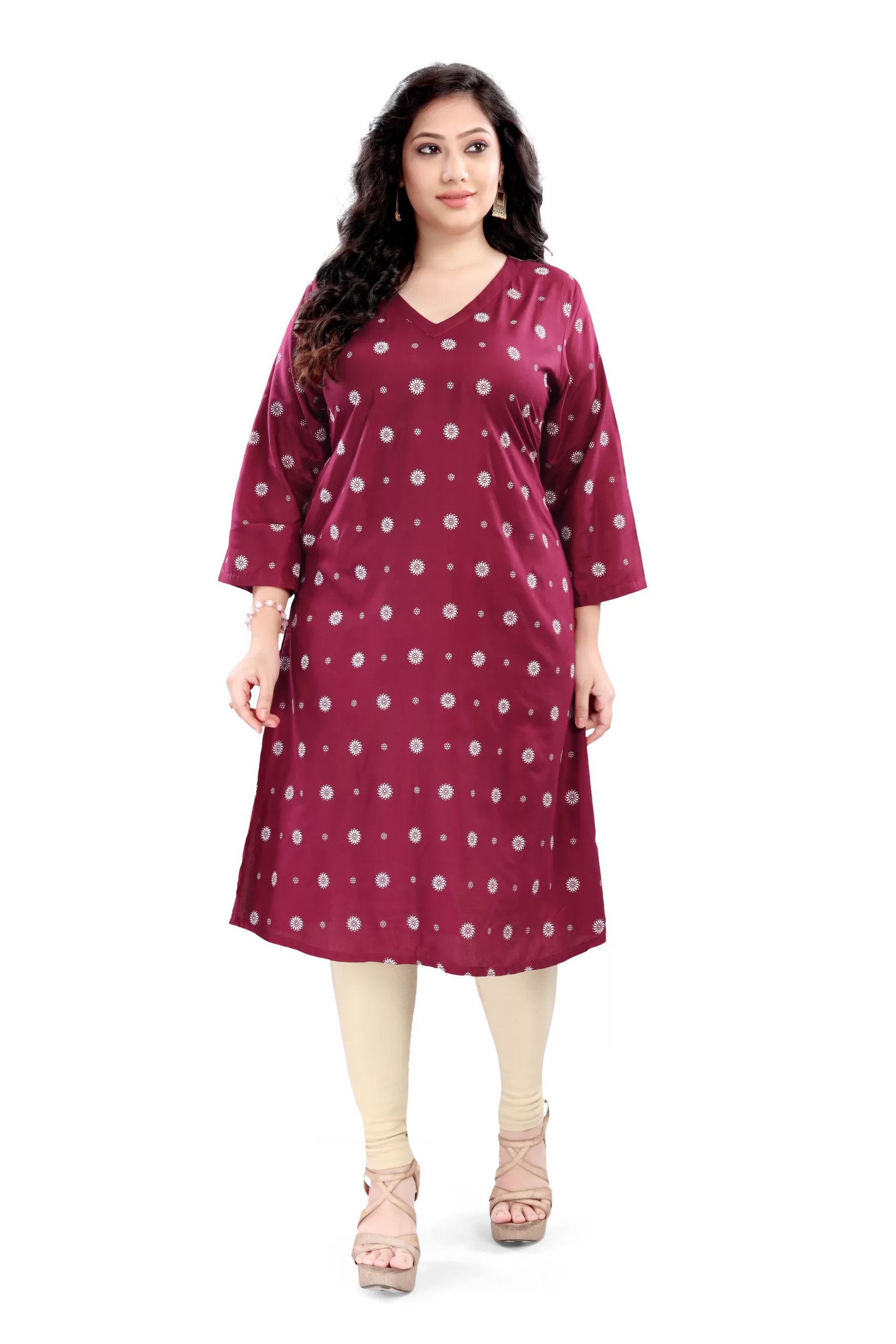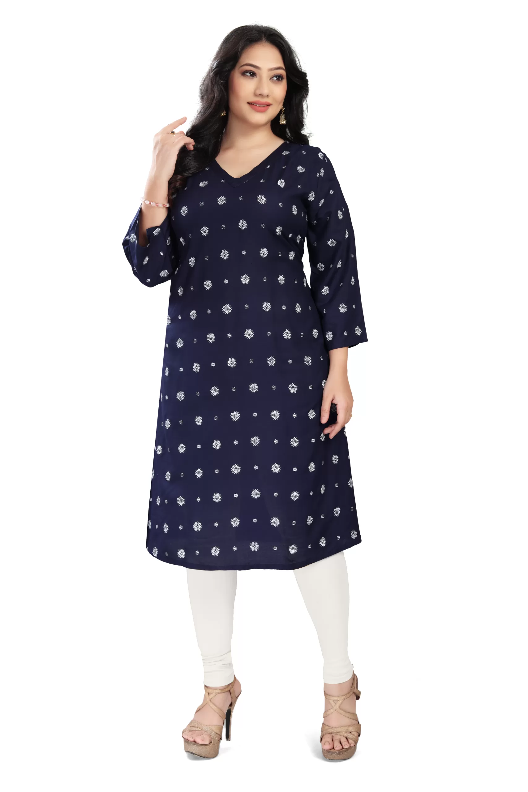 Elegant and comfortable, this rayon long kurti features 3/4th sleeves and a beautiful all-over print. Made from soft, breathable fabric, it’s perfect for everyday wear or casual outings. Style it with leggings or palazzos for a chic ethnic look!