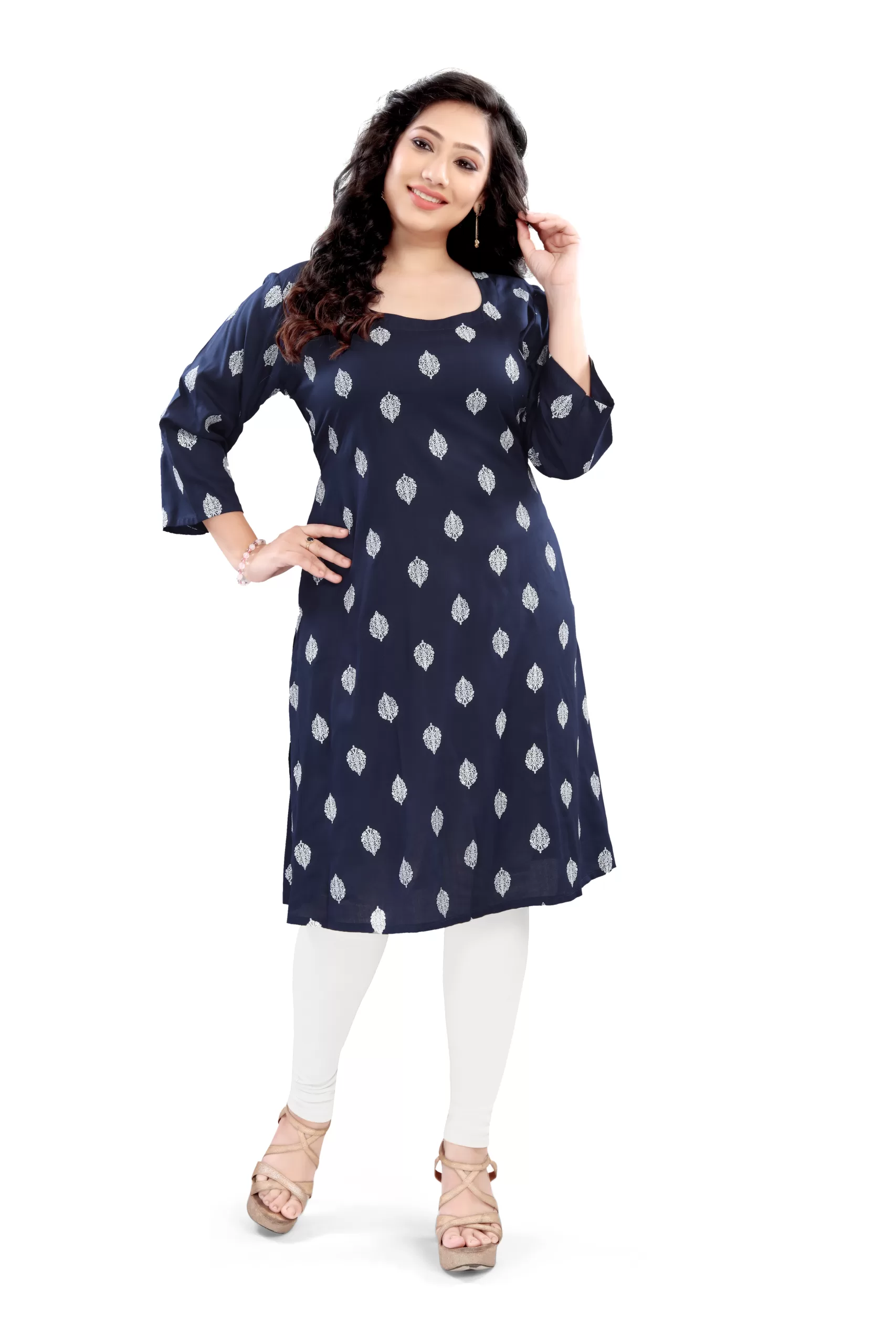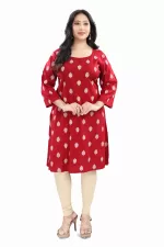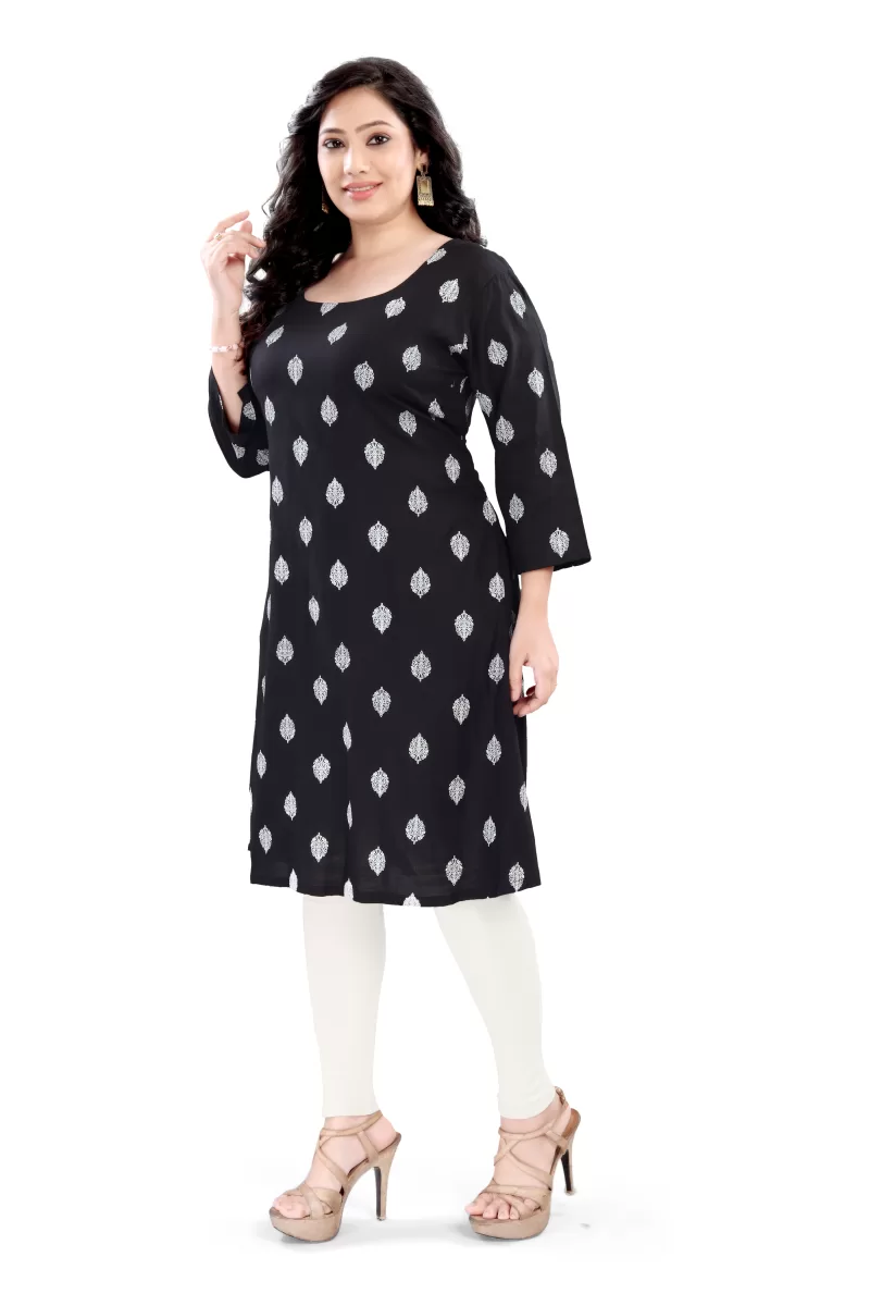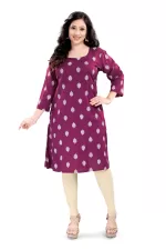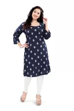 Elegant and comfortable, this rayon long kurti features 3/4th sleeves and a beautiful all-over print. Made from soft, breathable fabric, it’s perfect for everyday wear or casual outings. Style it with leggings or palazzos for a chic ethnic look!