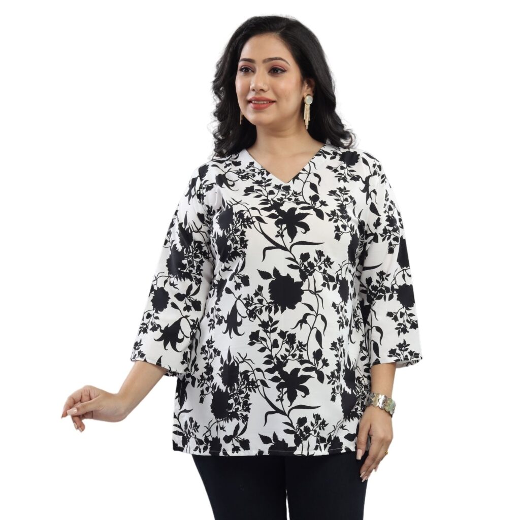 - Premium Quality Fabric: Made from high-quality crepe, this tunic ensures durability and a soft touch against your skin.