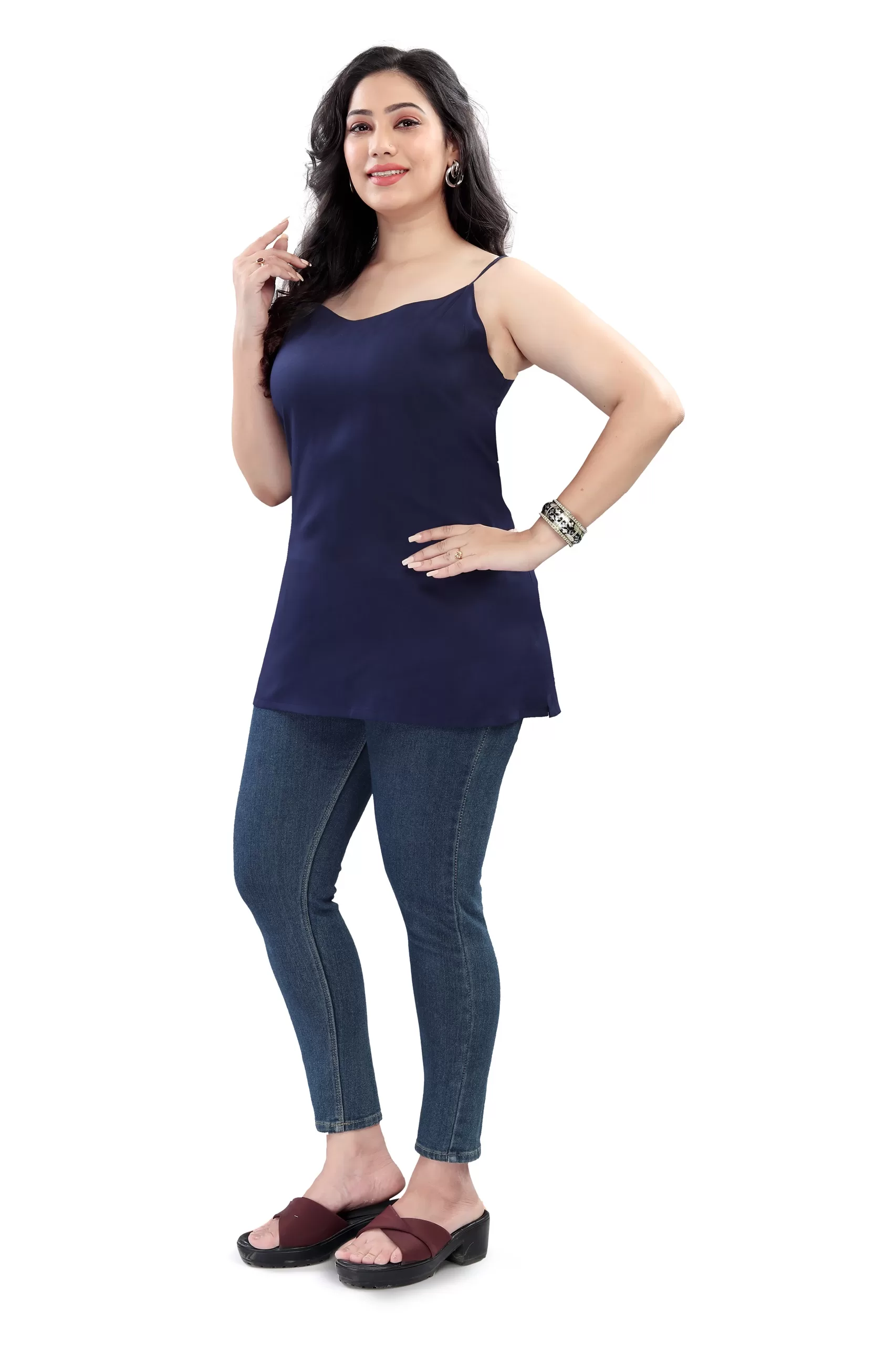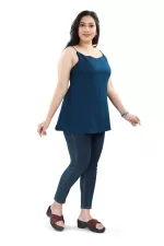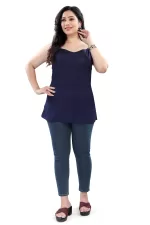 Introducing our Elegant Sleeveless Top, designed exclusively for women who love to flaunt their curves with confidence. This top is tailored from a high-quality, breathable fabric that ensures comfort all day long. The rich navy blue hue adds a touch of sophistication, making it a versatile piece for both casual outings and formal events. The sleeveless design offers a chic and airy feel, perfect for warm days or layering under a jacket for cooler evenings. Pair it with your favorite jeans, trousers, or skirts to create a stylish ensemble effortlessly.