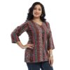 - Three-Quarter Sleeves: Designed with three-quarter sleeves, this tunic provides a balanced look that’s perfect for any occasion.